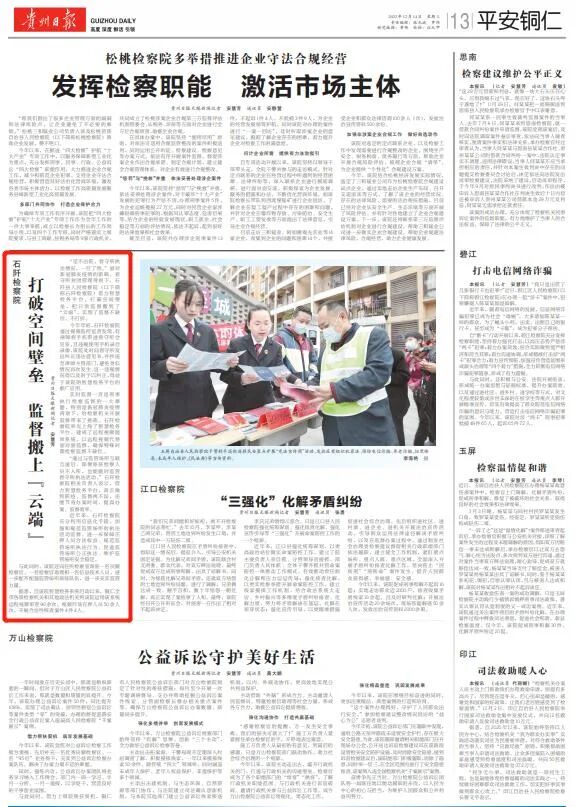 “通过与监管场所互联互通后,即便派驻检察人员不入所,也能随时监管看守所执法活动。”石阡检察院相关负责人表示,借力智慧检务平台,真正做到防疫、监督两不误,还能节省办案时间,提高办案、监督效率。