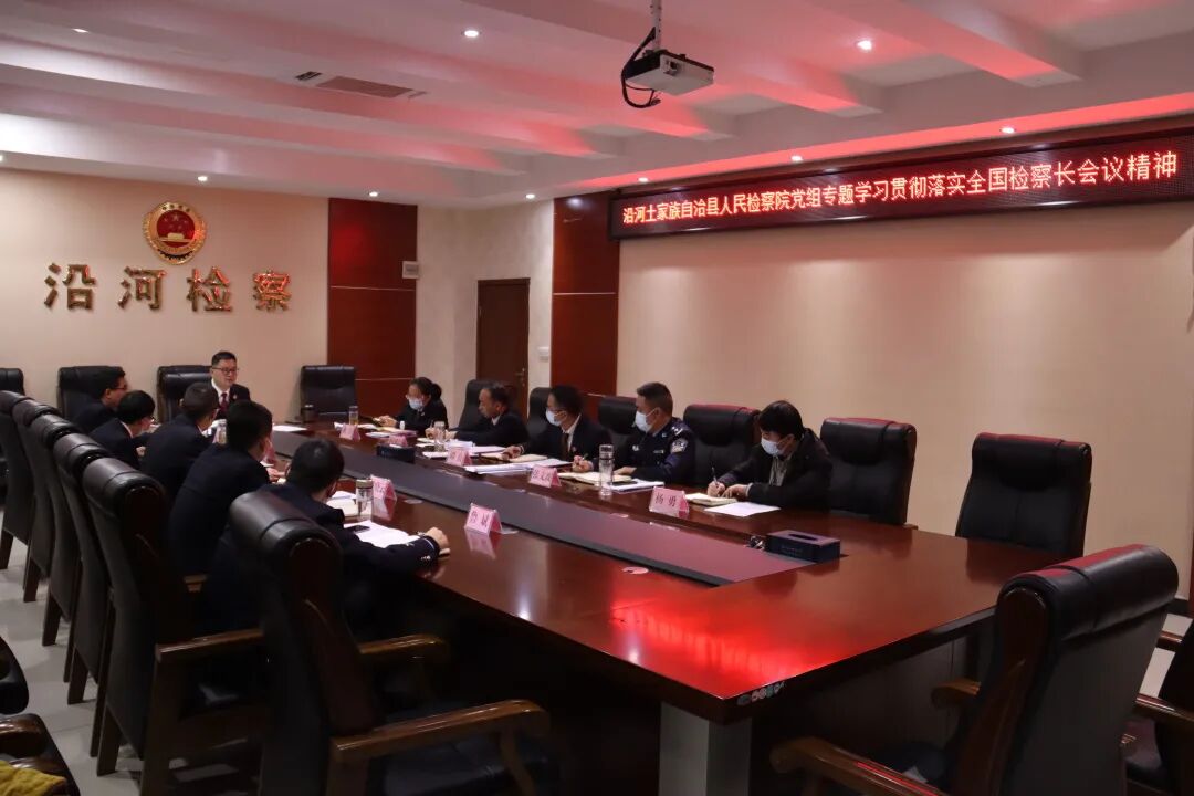 邱桢检察长结合沿河检察工作实际,就如何学习贯彻落实好全国检察长会议精神提出具体要求。他强调,一要始终坚持党的绝对领导,更加自觉维护和扞卫党的全面领导。坚持以习近平新时代中国特色社会主义思想为指导,全面贯彻落实党的二十大和二十届一中全会、中央经济工作会议、中央政法工作会议精神,认真学习贯彻习近平总书记对政法工作的重要指示精神,深入落实《中共中央关于加强新时代检察机关法律监督工作的意见》,把衷心拥护“两个确立”、忠诚践行“两个维护”落实到新时代新征程检察工作全过程各环节。二要确定工作主题,做优做实人民至上。依法能动履行法律监督职责,努力让人民群众在每一个司法案件中感受到公平正义。牢记和践行初心使命、不断满足人民群众更高水平需求、以人民群众获得感为评判标准,以更高水平监督办案引领法治进步、司法为民推动社会治理高质量发展。三是紧扣检察工作现代化服务中国式现代化。深化创新能动履职,切实履行检察职能,加强法律监督,运用法治力量,更加有力维护国家安全和社会稳定;更加有力服务经济高质量发展;更加有力厚植党执政的政治根基,充分运用法治力量服务中国式现代化,努力为沿河经济社会高质量发展贡献法治力量。四要坚持全面从严治检,加强队伍建设展现新作为。全面把握检察工作总目标总要求,各分管领导要组织分管部门干警结合岗位职责,切实将学习贯彻落实全国检察长会议精神与谋划好2023年各项检察工作统筹安排,以“一竿子插到底”的韧劲和决心,从政治态度、政治规矩、业务能力、工作实绩、纪律作风等方面不断加强队伍建设,持续推动作风建设永远在路上,广泛凝聚发展共识,以最佳的工作状态投入到检察事业中,推进各项工作取得新突破,让全国检察长会议精神在沿河检察系统落地生根、开花结果。